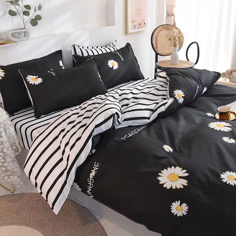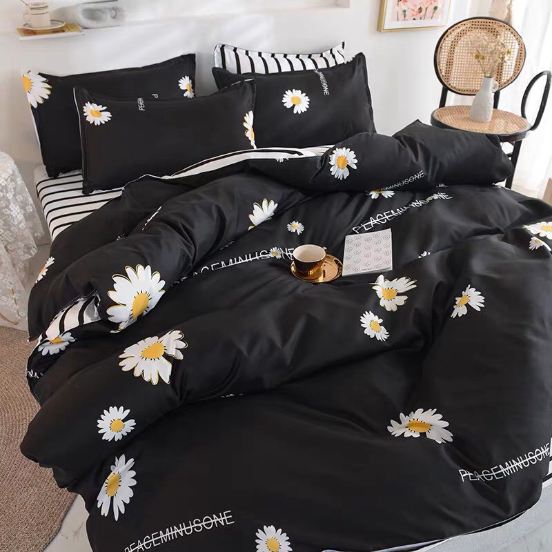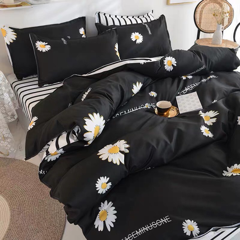 [MẪU TỐI] Trọn Bộ 4 Món Cotton Poly Nhập Mẫu CÚC TRẮNG NỀN ĐEN đủ kích thước.Titox ShopChất liệu: Cotton Poly Nhập