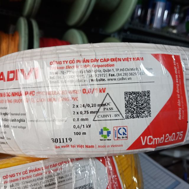 Thiết Bị Điện Gia Dụng > Mạch điện & Phụ tùng > Ổ cắm điện & Dây nối || [màu trắng] Dây điện đôi mềm Cadivi 2x0,75mm(2x24)Còn hàng