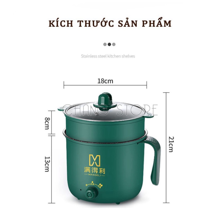 ( Màu Xanh )Ca Nấu Mì , Nồi Lẩu Mini, Nồi Nấu Đa Năng Có Tay Cầm 1,8L- Nồi Lẩu Điện 2 Nấc Nhiệt Mẫu Mới 2021 Kèm Giá Hấp