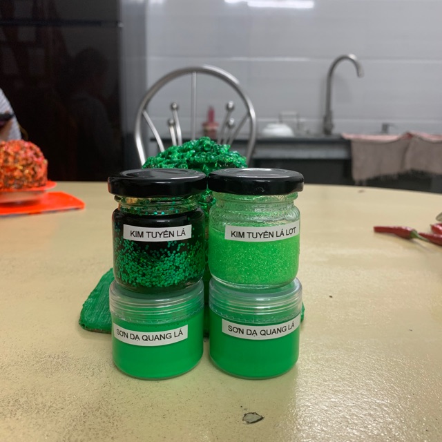 Nhà Cửa & Đời Sống > Dụng cụ & Thiết bị tiện ích > Sơn nhà cửa || Màu xanh lá dạ quang và kim tuyến lá lợt , đậmCòn hàng
