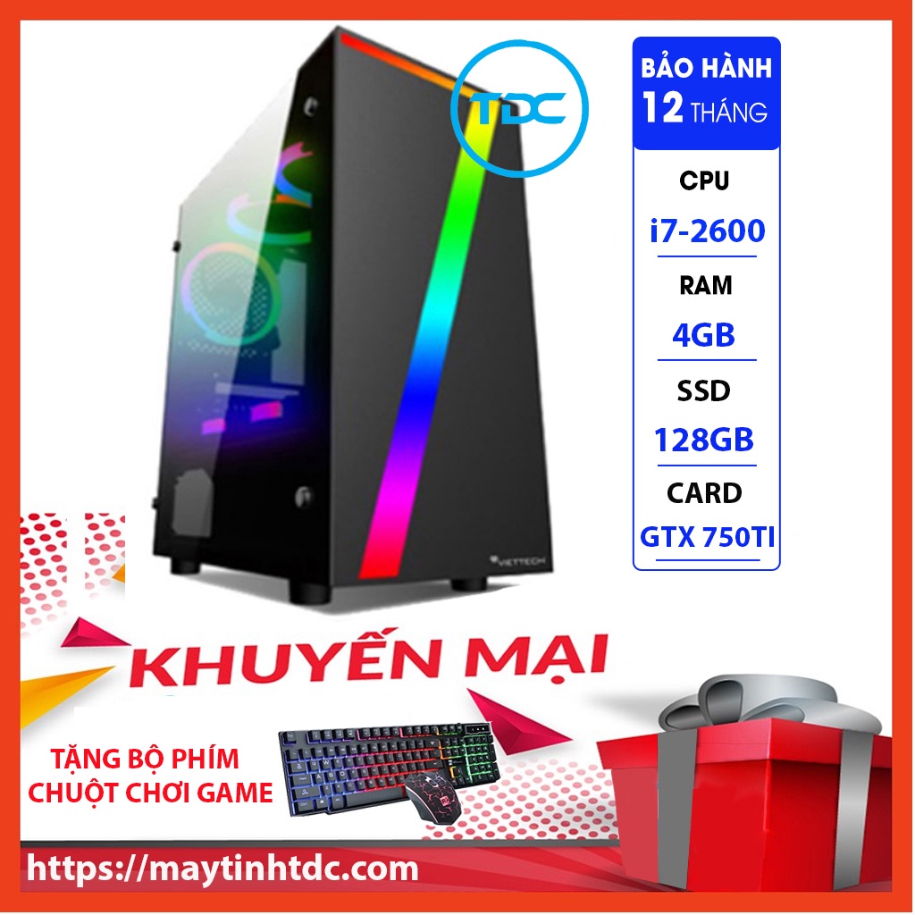 MAX PC GAMING X7 CPU Core i7-2600 Ram 4GB SSD 128GB GTX 750TI Chơi PUBG,LOL, CF, Fifa4, Đế chế ...+ Tặng Ngay Bàn Phím Giả Cơ,Chuột Led 7 Màu - Máy Tính Chơi Game,Thùng cây máy tính để bàn chơi gameàu- Quà tặng: TẶNG NGAY : BÀN PHÍM GIẢ CƠ 7 MÀU + CHUỘT LED 7 MÀU