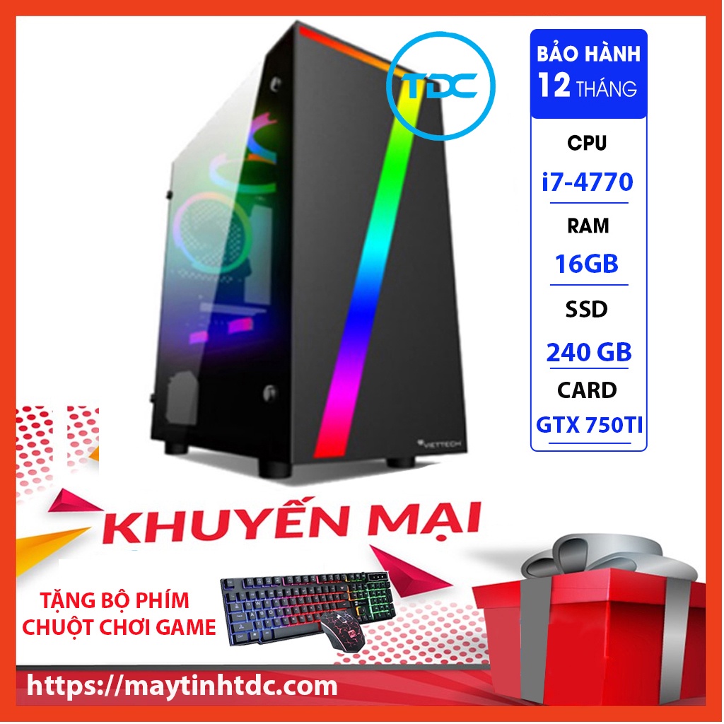 MAX PC GAMING X7 CPU Core i7 4770 Ram 16GB SSD 240GB GTX 750TI Chơi PUBG,LOL, CF, Fifa4, Đế chế ...+ Tặng Ngay Bàn Phím Giả Cơ,Chuột Led 7 Màu - Máy Tính Chơi Game,Thùng cây máy tính để bàn chơi gameàu- Quà tặng: TẶNG NGAY : BÀN PHÍM GIẢ CƠ 7 MÀU + CHUỘT LED 7 MÀU