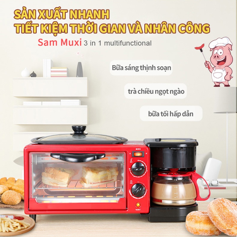 Bữa sáng nhanh, trà chiều nhàn nhã, đồ ăn nhẹ tinh tế, mọi thứ đều có, máy pha cà phê, lò nướng điện, chảo rán ba trong một.* Lò nướng chuyên nghiệp, làm nóng liên tục trong 60 phút, có thể sử dụng độc lập lò nướng và chảo rán; trang bị chảo chống dính, chảo xỉ có thể tháo rời, bảng điều khiển bằng thép không gỉ nâng cao chất lượng.