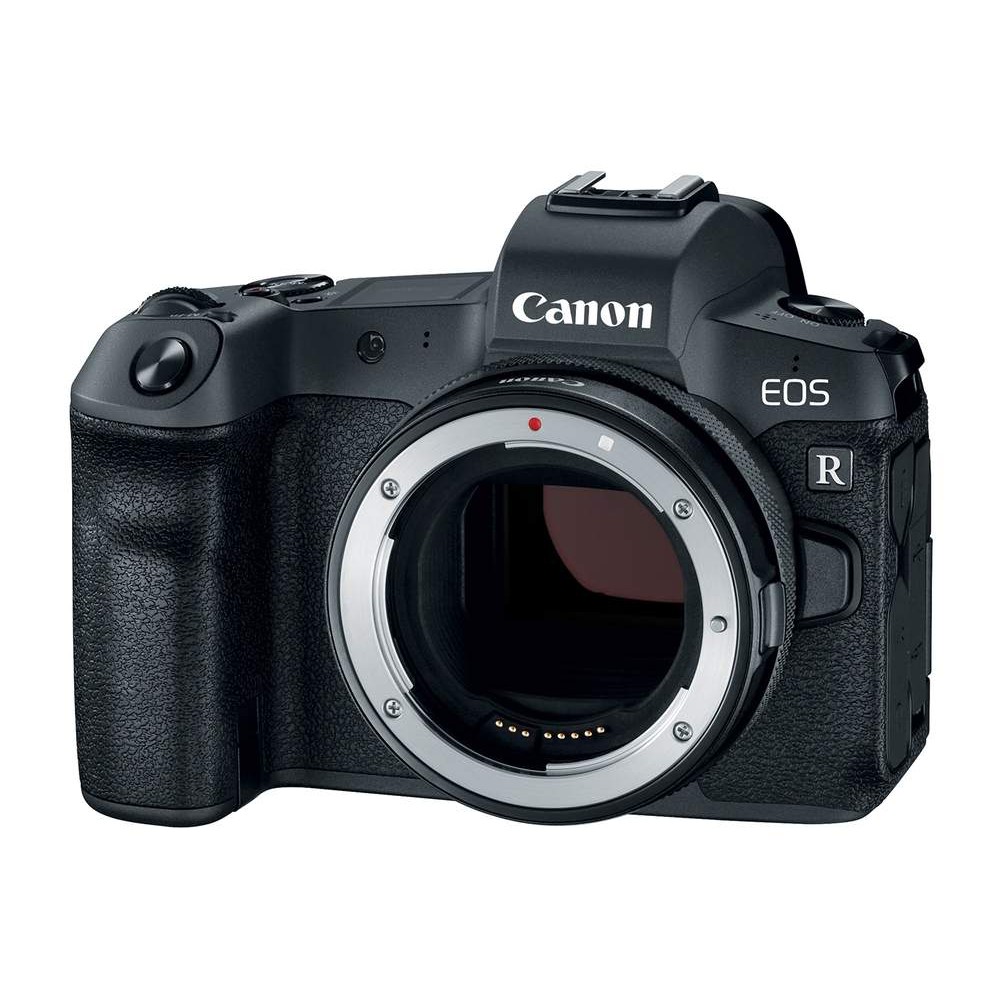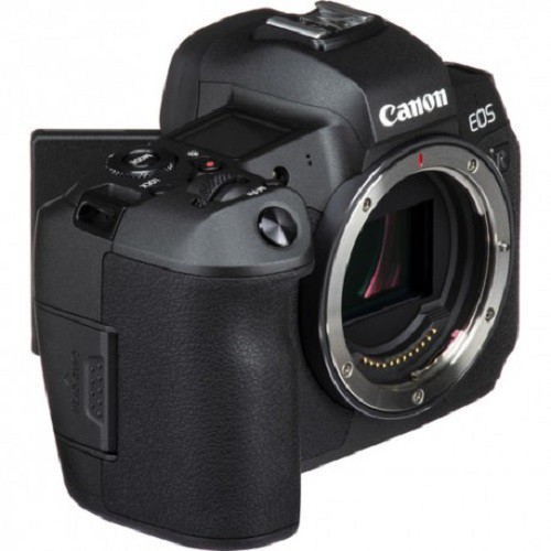 Máy ảnh Canon EOS R sở hữu cảm biến CMOS full frame (36 x 24 mm), độ phân giải 30,3 MP. Chiếc máy ảnh không gương lật full frame đầu tiên của Canon sở hữu dải ISO từ 100 đến 40.000. Bên cạnh đó, cảm biến của máy có cấu trúc Dual Pixel đi kèm với chip DIGIC 8, vi xử lý hình ảnh mới nhất của Canon có thể giúp EOS R lấy nét nhanh hơn.Ngoài ra, EOS R còn sở hữu màn hình lật đa chiều cảm ứng, ống ngắm điện tử OLED và màn hình LCD hiển thị thông tin trên đỉnh máy. Bên cạnh đó, Canon bố trí thêm vòng chỉnh ISO trên ống kính và một phím vuốt chọn điểm lấy nét ở mặt lưng. Tổng thể thiết kế của EOS R cho cảm giác của một chiếc DSLR thu nhỏ.
