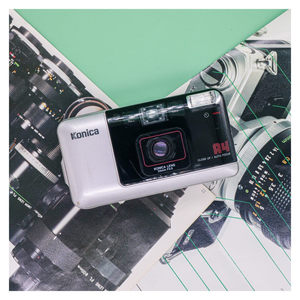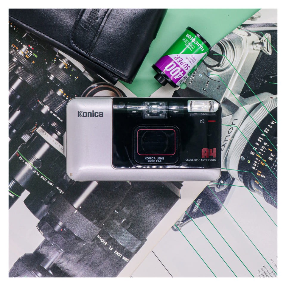 🔎Siêu phẩm chân dung này được ra đời vào năm 1989, Konica A4 là chiếc compact PnS đặt nền móng thiết kế cho dòng Big Mini nổi tiếng sau này.🔎Hình dáng vuông vắn và gọn gàng nhưng cũng rất mềm mại với đường bo góc, tạo cảm giác thoải mái khi sử dụng. Ống kính 35mm f/3.5 tiêu chuẩn, phù hợp cho mọi nhu cầu, chắc chắn không làm bạn thất vọng với chất lượng ảnh. Máy có khả năng khoá nét (focus lock) giúp bạn điều chỉnh bố cục linh hoạt. Lấy nét khoảng cách cực gần, từ 30 cm với close-up mode. Tốc độ mà chập từ 1/3s-1/500s, EV 5-17, flash có thể auto hoặc điều chỉnh bằng tay. Với tính năng và tầm giá thì Konica A4 xứng đáng là đối thủ cân sức với Olympus Mju I.