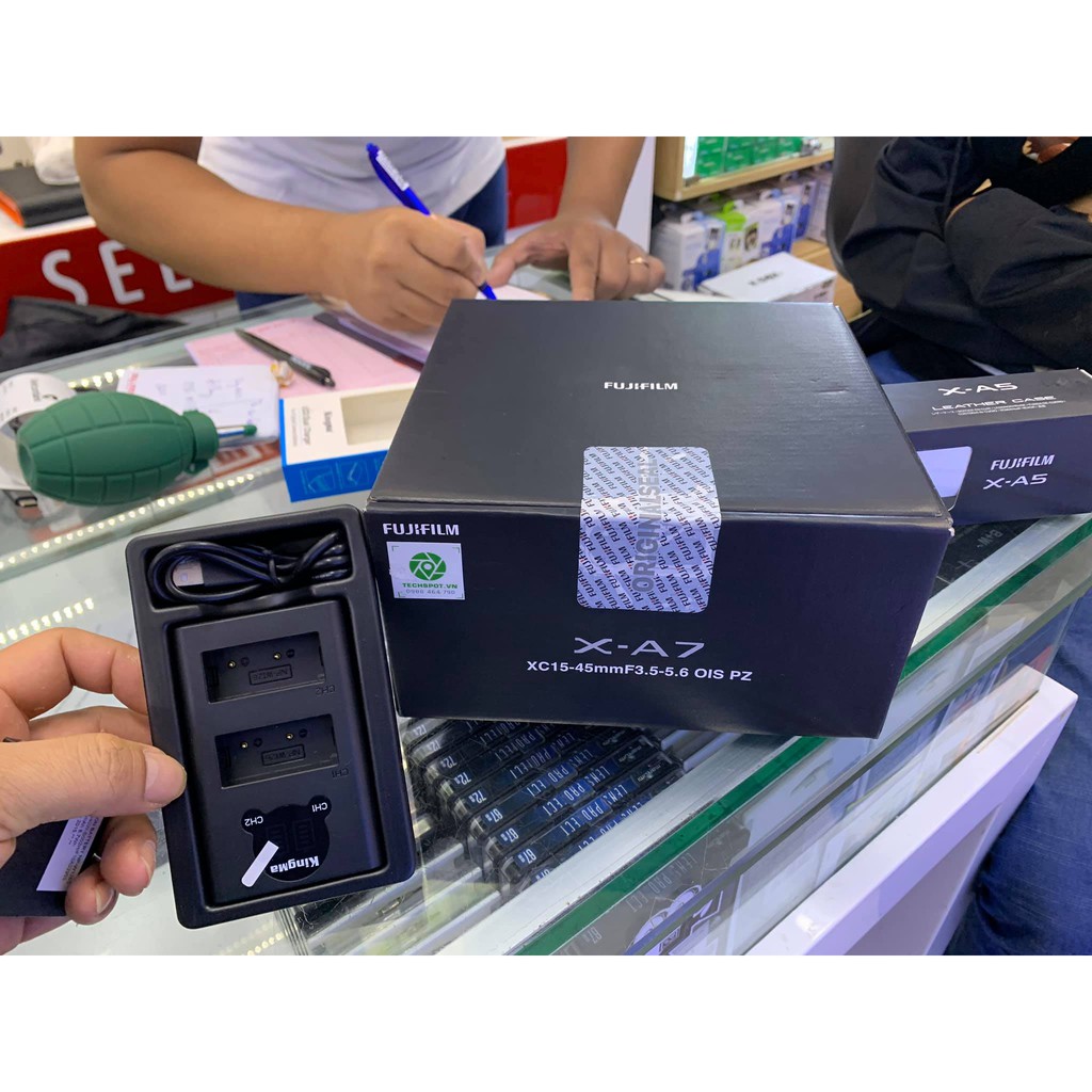 A: Sản Phẩm bao gồm: Hộp nguyên seal, FUJIFILM X-A7 (body), Pin FUJIFILM NP-W126S Li-Ion Cáp USB, Bộ chuyển đổi tai nghe, Dây đeo ,Body Cap