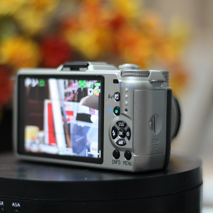 Bên trong có cảm biến 12.4MP backlit 1/2.3" CMOS, chụp ảnh độ nhiễu thấp ngay cả với ISO cao. Tuy kích thước nhỏ nhưng nó có vẫn có flash cóc, màn hình LCD khá lớn 3 inch độ phân giải 460.000 điểm ảnh, góc nhìn rộng.