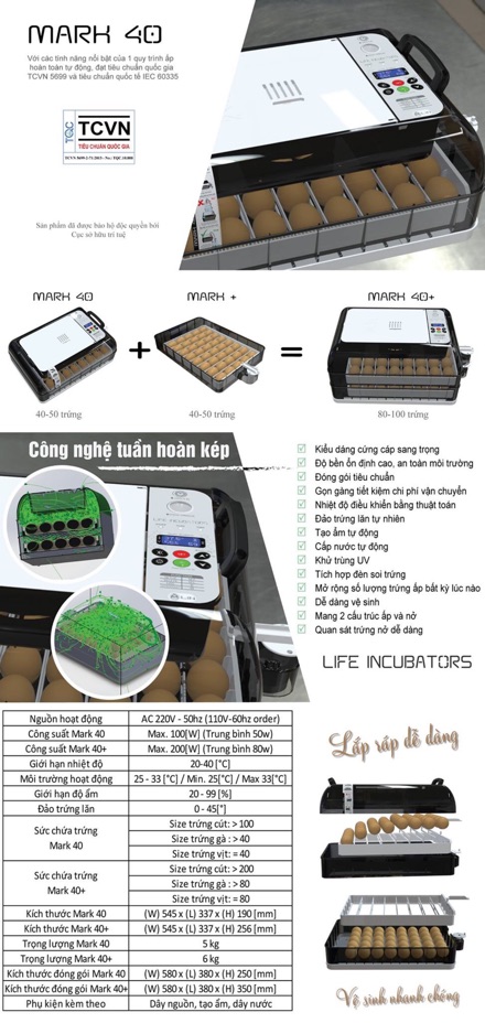 Giới thiệu Máy ấp trứng combo Mark 40+ ,Chính hãng LIN