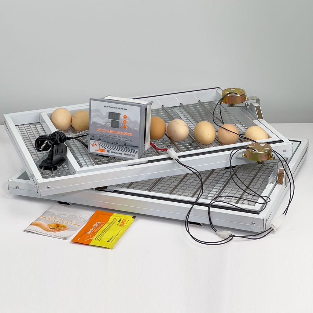Máy Ấp Trứng Gà Ánh Dương P100 Đảo Tự Động 100 Trứng - Khay nhôm đảo lăn, lắp thùng xốp