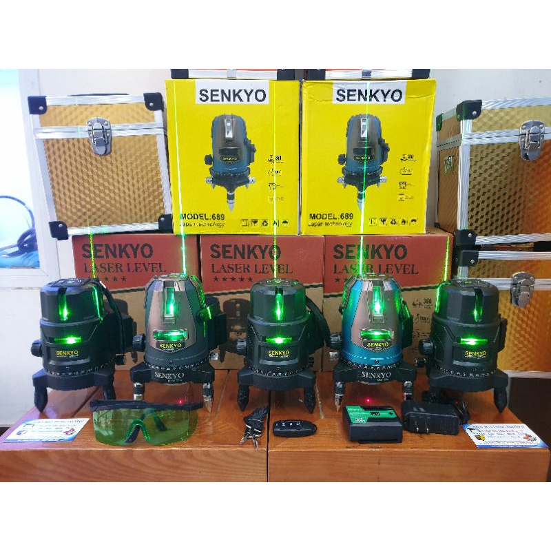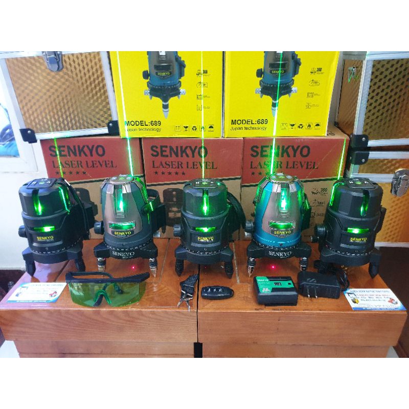 MÁY BẮN CỐT LASER SENKYO 689 CAO CẤPCó 5 tia laser xanh trong đó 4 tia đứng, 1 tia ngang độ sáng cựccao và rõ, thêm nhiều điểm rọi trên tia laser. Máy tia sáng, sắc nét, mảnh. Độ chính xác cao.