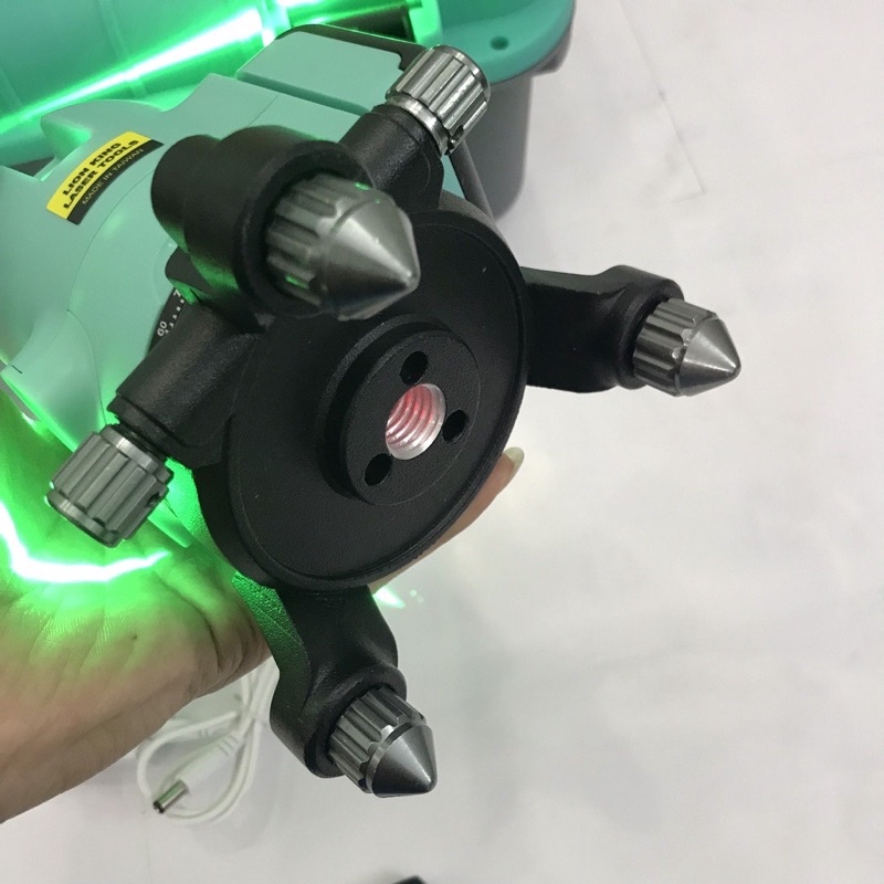 + Đầu ra tia laser màu xanh 1 tia ngang, 4 tia dọc vuông góc nhau, 1 chấm laser dọi xuống.