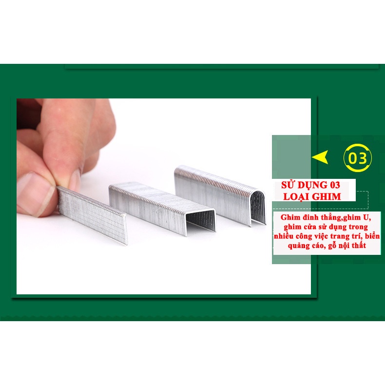 - Công dụng: bấm đinh ghim lên gỗ, ván ép, nhựa, la phông, ...