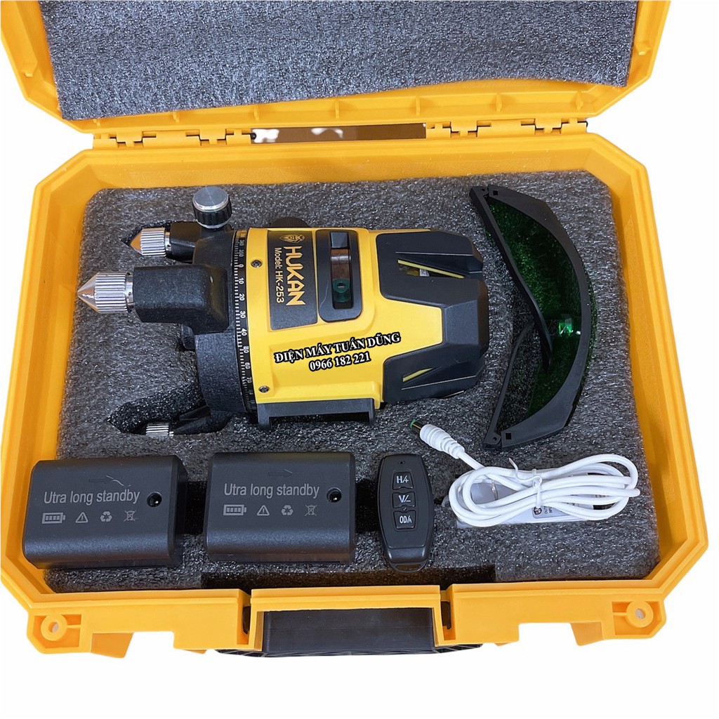 Nhà cửa & Đời sống > Dụng cụ & Thiết bị tiện ích > Dụng cụ > Dụng cụ đo lường || Máy bắn tia laser Hukan,5 tia xanh,2 pin,có điều khiển chỉnh độ sáng,kèm chânCòn hàng