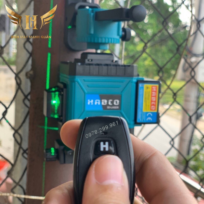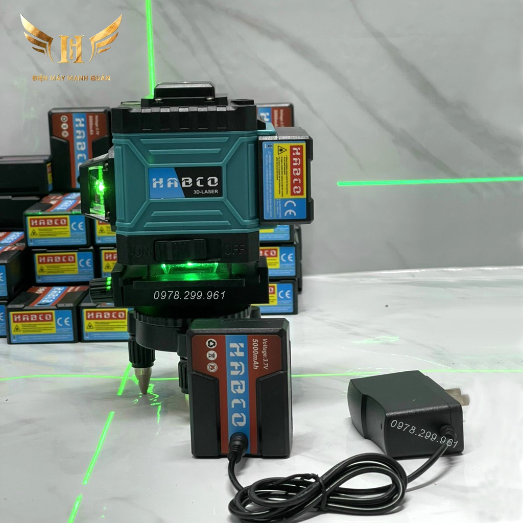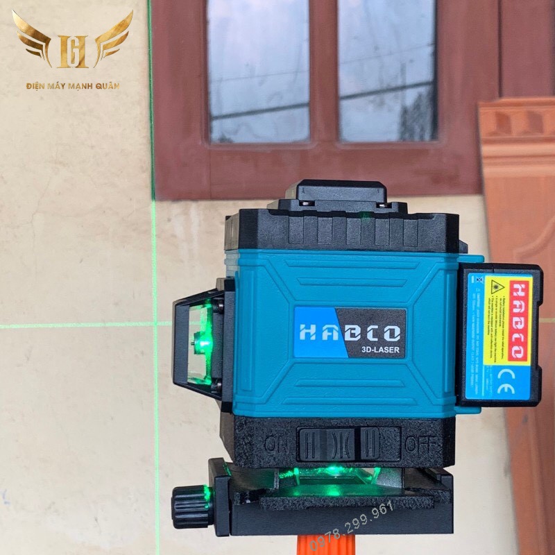 Máy Bắn Tia Laze, Máy Cân bằng 12 Tia Xanh HABCO - Cân Bằng Tự Động - 2 Pin Sạc - Tặng Kèm Chân Trụ 1m2