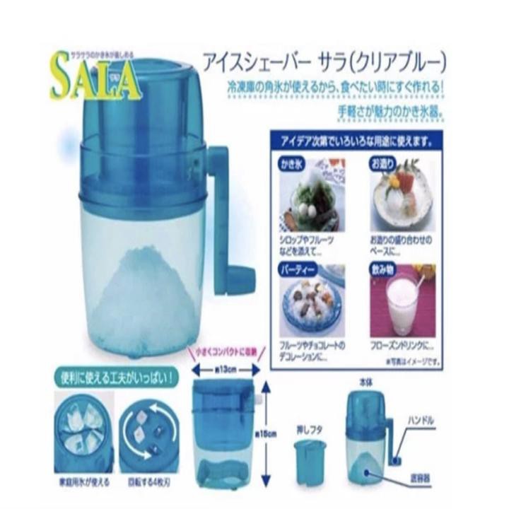 Máy bào đá cầm tay Sala công nghệ Nhật BảnMáy bào đá cầm tay Sala là một trong những sản phẩm tiện dụng dành cho gia đình với thiết kế nhỏ gọn, tiện dụng. Bạn có thể hoàn toàn làm một ly kem đá bào hay một ly nước ép trái cây với đầy đá bào mát lạnh giúp giải mát cơn khát cho các thành viên trong gia đình.