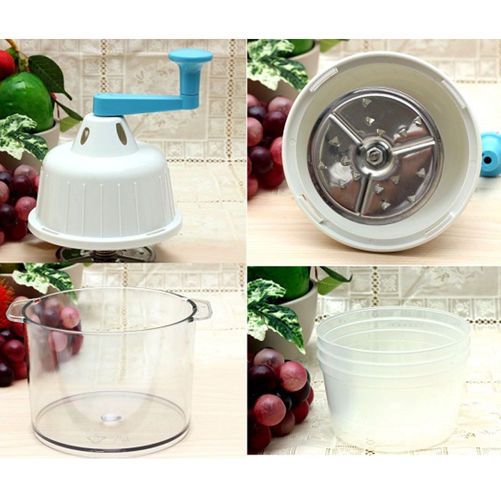 - Bộ sản phẩm gồm: Nắp trục tay quay, thân máy, ly chứa, tặng kèm 03 khuôn nhựa (dùng cho chức năng bào đá)