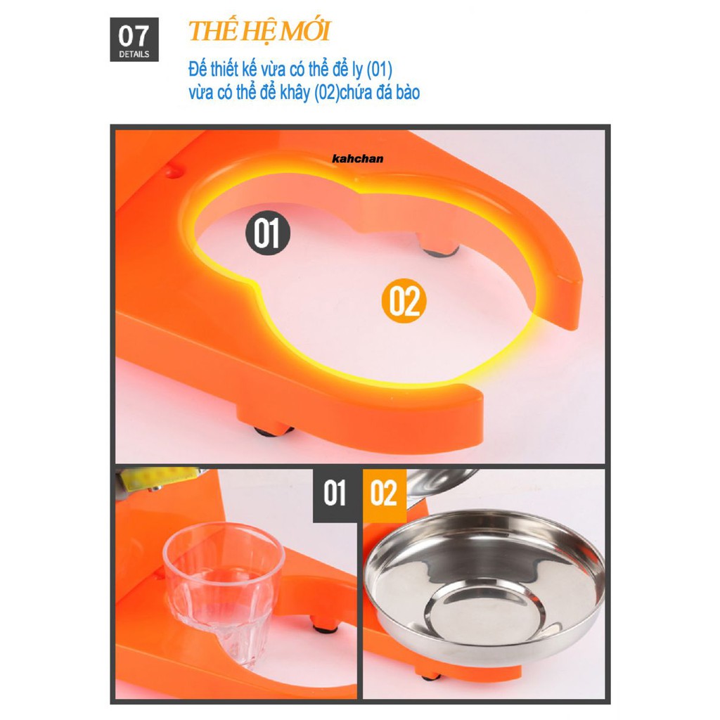 - Máy bào đá Kahchan có rất nhiều màu sắc cho khách hàng lựa chọn: Đỏ, Cam, Xám, Xanh dương,...