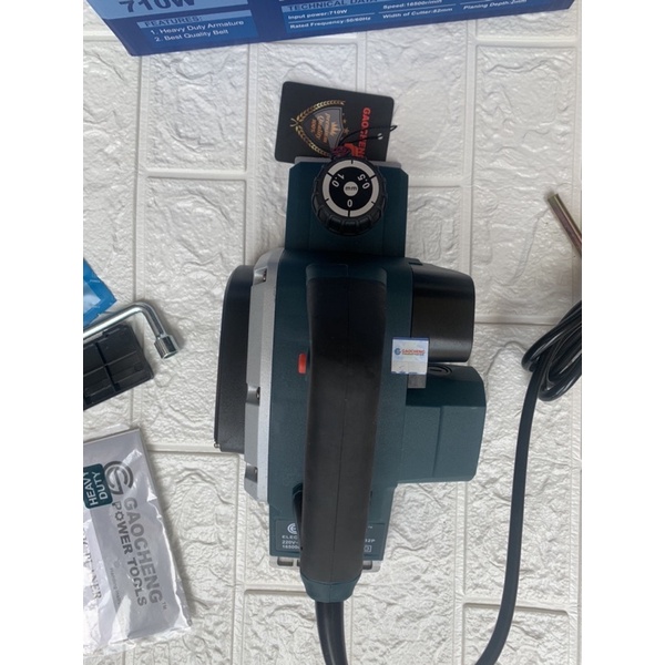 - Máy bào điện cầm tay gaocheng có công suất 710W hoạt động mạnh mẽ, giúp máy bào vật liệu gỗ cho bề mặt láng bóng một cách dễ dàng và nhanh chóng.