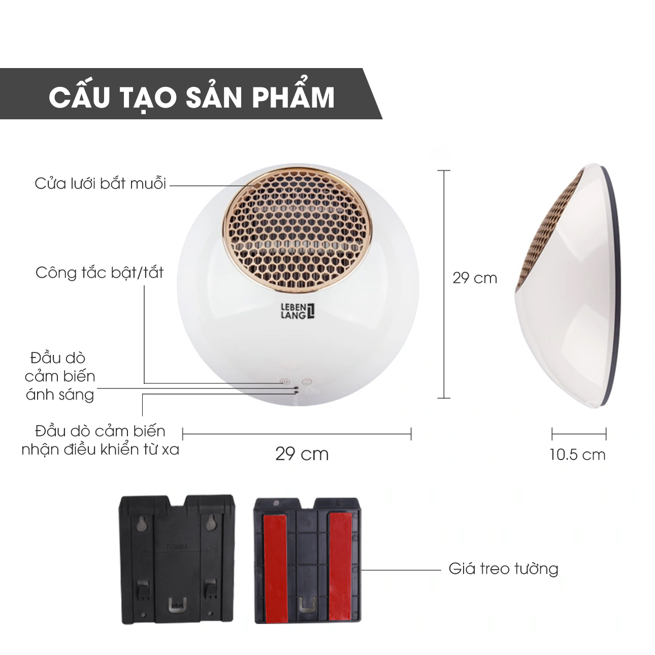 Máy bắt muỗi thông minh Lebenlang LBL2301, cảm biến quang tự động thông minh, công suất 10W, bảo hành 2 năm – Hàng chính hãng