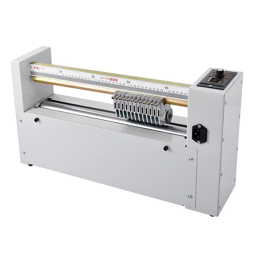Máy bế demi rọc demi tem nhãn dán decal khổ 46cmáy bao gồm 8 lưỡi bế demi và 1 lưỡi răng cưa theo máy tùy theo nhu cầu công việc của các sở in ấn mà mình bố trí các lưỡi ngang qua lại tùy chỉnh.