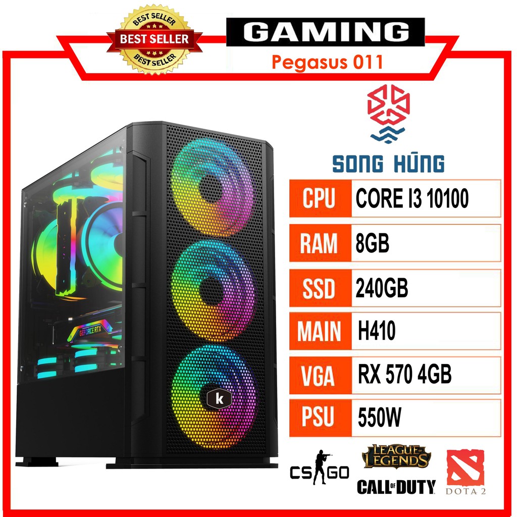 Máy bộ PC GAMING Pegasus 011 ((I3 10100F/H410/16GB-RAM/RX570 /500W/Tản nhiệt CPU Jonsbo CR-1000 RGB)