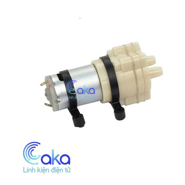 Máy bơm nước mini 12VMáy bơm nước mini 12V Water Pump mini 358 có kích thước nhỏ gọn, được sử dụng để bơm nước, dung dịch với khả năng bơm tối đa lên đến 1~2L/1 phút, thích hợp với các thiết kế sử dụng máy bơm nhỏ: bơm hồ cá, tưới nước cho cây,..., lưu ý không cấp ngược cực vì có thể làm hư cơ cấu bơm của động cơ (cực dương có đánh dấu màu đỏ).