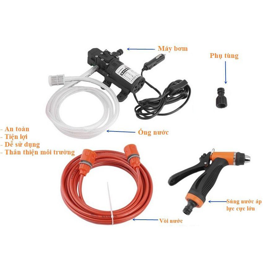 Bộ Máy bơm rửa xe tăng áp lực nước mini. Thiết kế nhỏ gọn, thông minh, tiện dụng. Điện áp 12VDC nên rất an toàn. Có công tắc áp lực, tự động đóng khi đủ áp lực và tự động mở khi giám áp lực