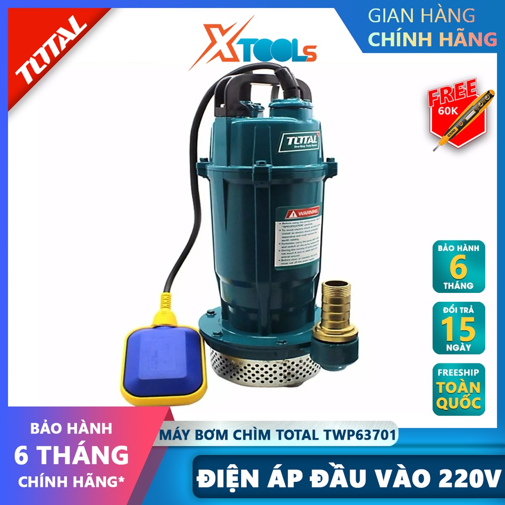 Nhà cửa & Đời sống > Dụng cụ & Thiết bị tiện ích > Máy bơm nước & phụ kiện || Máy bơm chìm 1 pha TOTAL máy bơm thả chìm nước sạch 220V, Công suất từ 370W (0.5HP) - 750W (1HP), dùng trong gia đìnhCòn hàng