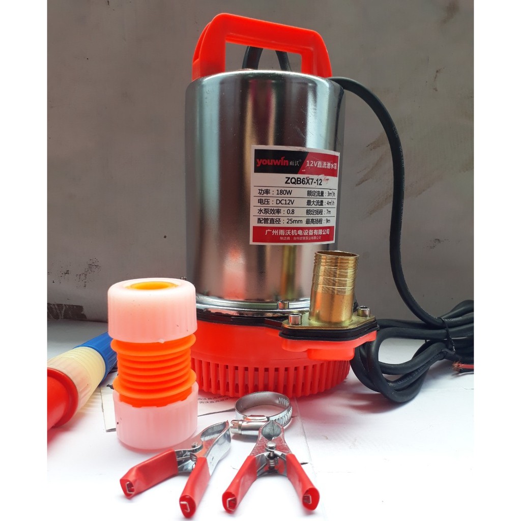 MÁY BƠM CHÌM 12V 180W 100L + Phụ kiện như hình