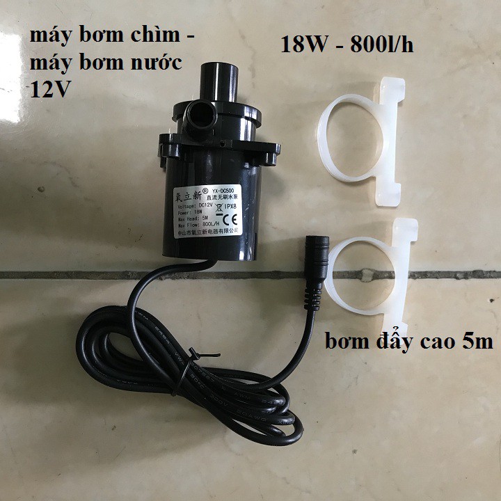 máy bơm chìm 12V 800L không chổi than, tiêu chuẩn IPX8, chất lượng cao, bền bỉ, hoạt động liên tục. Máy có lưu lượng lớn vừa phải thích hợp cho các loại hồ cá trong nhà và sân vườn, hòn non bộ , tản nhiệt máy,bơm hút nước trong bể,trong thùng ... Với thiết kế bơm chìm nên máy hoạt động yên tĩnh. Đặc biệt máy dùng nguồn điện 12V DC 1 chiều rất an toàn.Động cơ Brushless không chổi than hoạt động liên tục 24 / 24h mà không gây tiếng ồn và tuổi thọ rất cao
