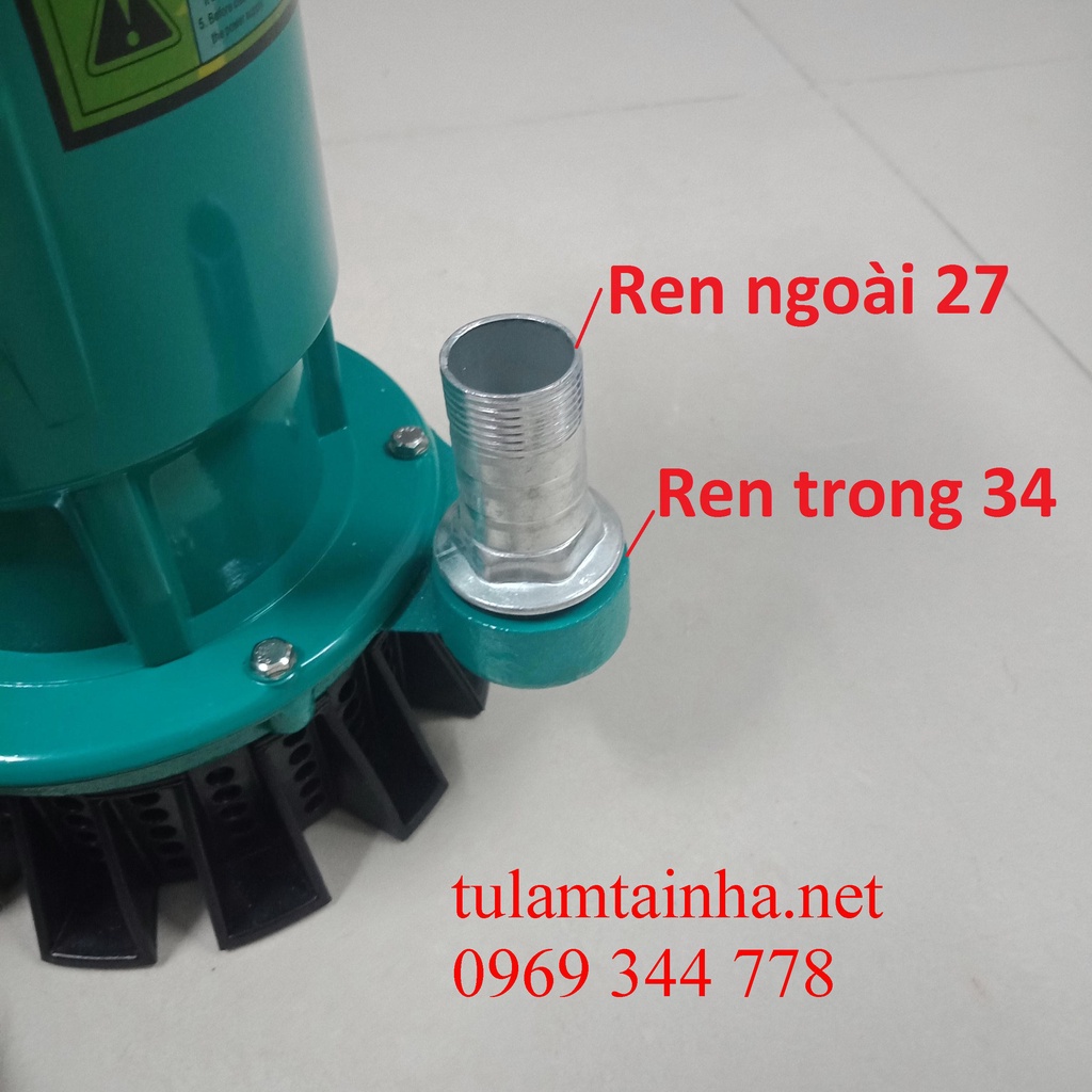 - Ống ra: ren trong 34mm, ren ngoài 27mm
