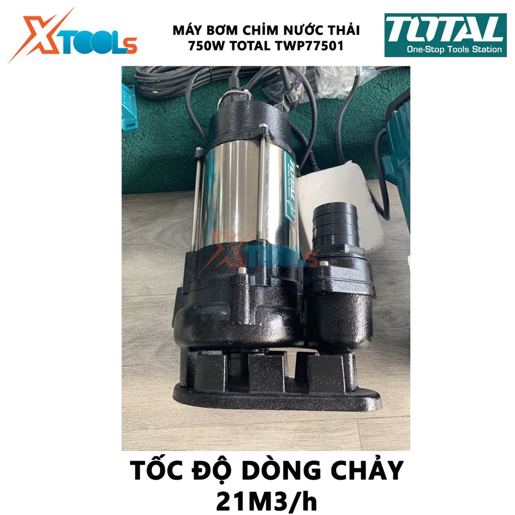 Máy bơm chìm chất thải TOTAL TWP77501 Máy bơm chìm nước thải 750W(1.0HP) 13M Tốc độ dòng chảy 21M3/h tưới tiêu, bơm hút