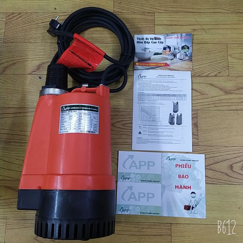 Nhà cửa & Đời sống > Dụng cụ & Thiết bị tiện ích > Máy bơm nước & phụ kiện || Máy bơm chìm hút nước thải APP BPS 400, bảo hành 06 thángCòn hàng