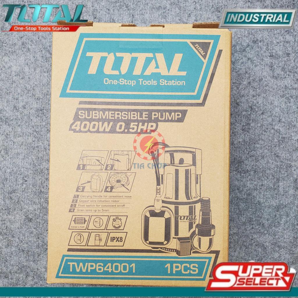 Giới thiệu Máy bơm chìm dùng điện 220V công suất 400W total TWP64001 - bơm tỏm thả ngập nước có công tắc phao tự động