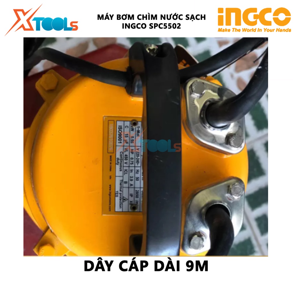 Máy bơm chìm nước sạch INGCO SPC5502 máy bơm mini Điện áp 220-240V ~ 50Hz, Công suất đầu vào 550W(0.75HP) Chiều cao bơm
