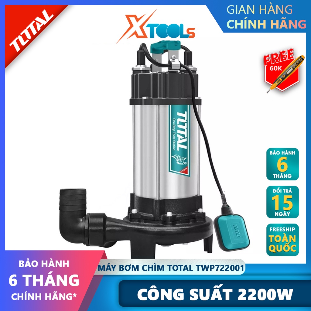 Nhà cửa & Đời sống > Dụng cụ & Thiết bị tiện ích > Máy bơm nước & phụ kiện || Máy bơm chìm nước sạch TOTAL TWP722001 máy bơm thả chìm tự động điện thế 220V, công suất 2200W(3.0HP), hút nước cốngCòn hàng