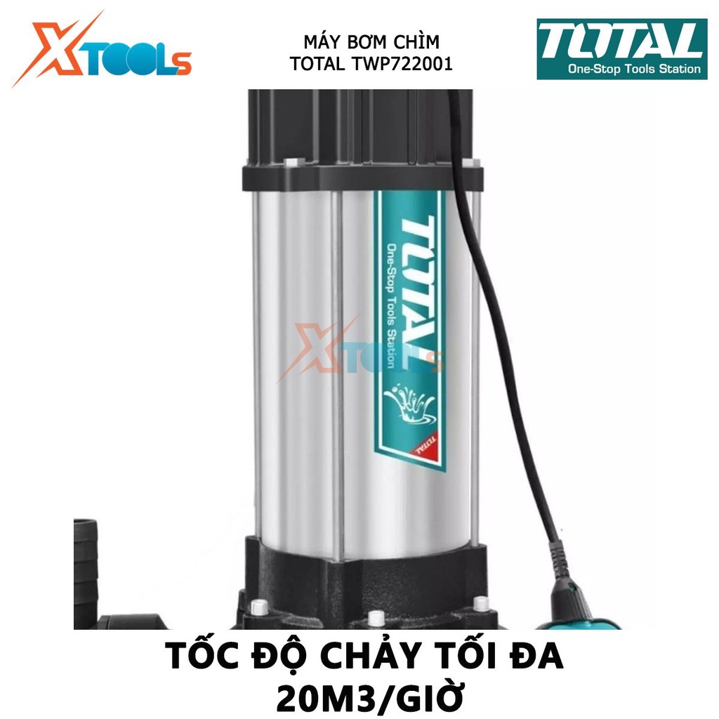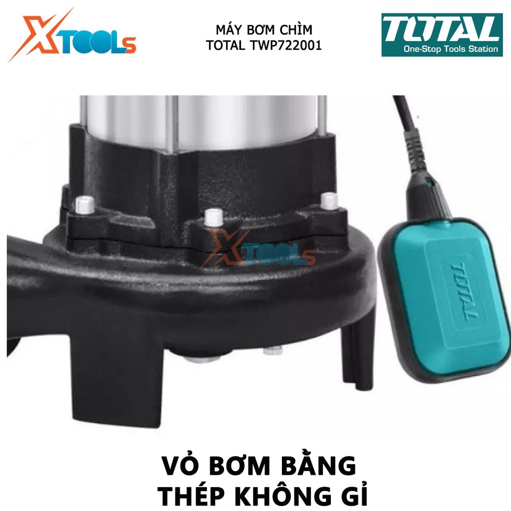 Máy bơm chìm nước sạch TOTAL TWP722001 máy bơm thả chìm tự động điện thế 220V, công suất 2200W(3.0HP), hút nước cống