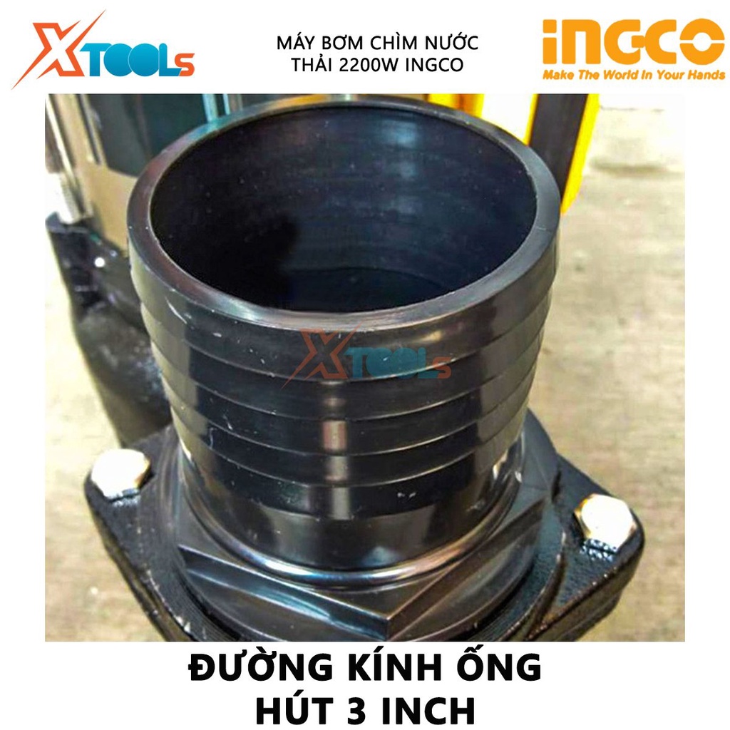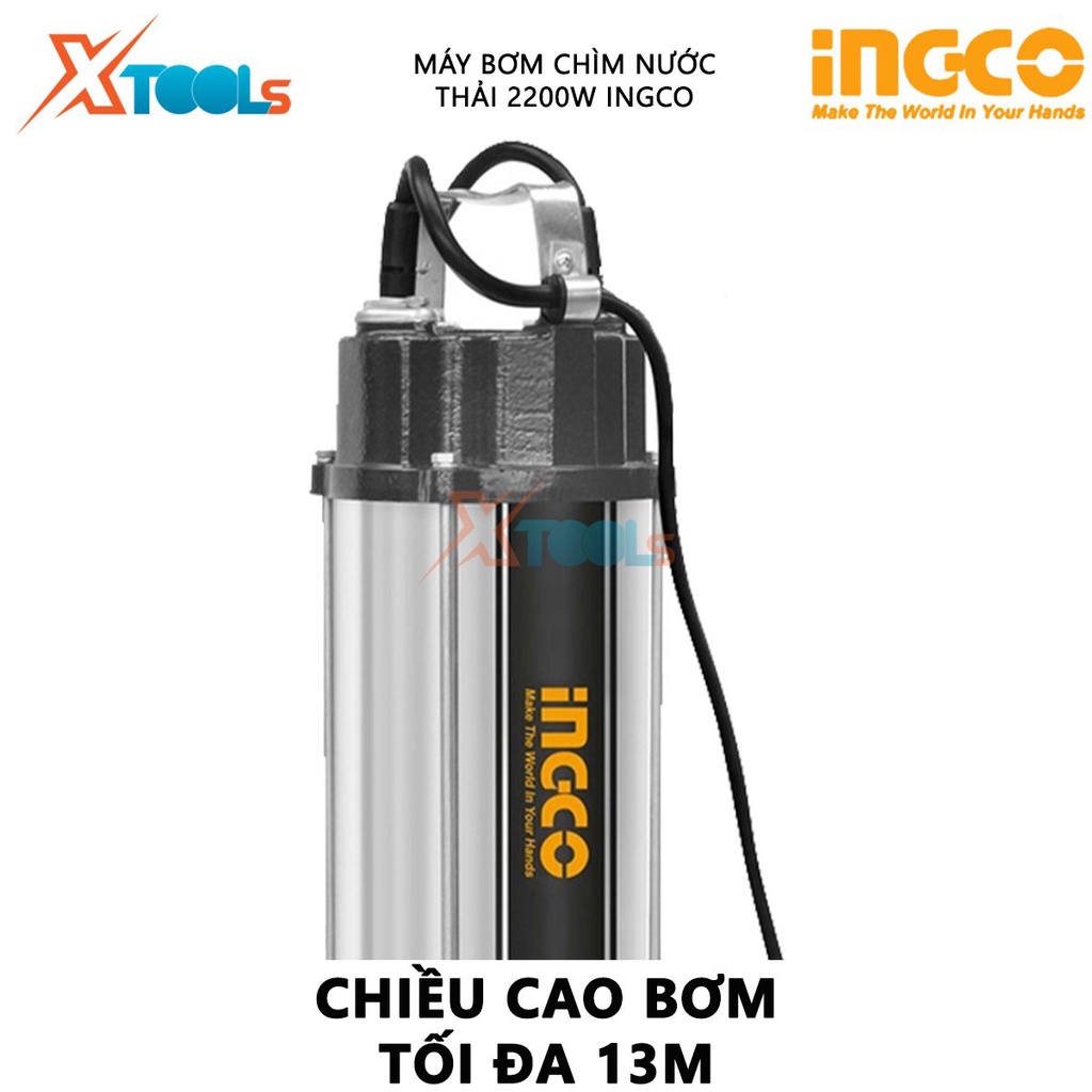 Máy bơm chìm nước thải INGCO SPDB22001 | máy bơm chìm 2200W(3.0HP), chiều cao bơm 13m, tốc độ dòng chảy 88m3/h, motor dâ