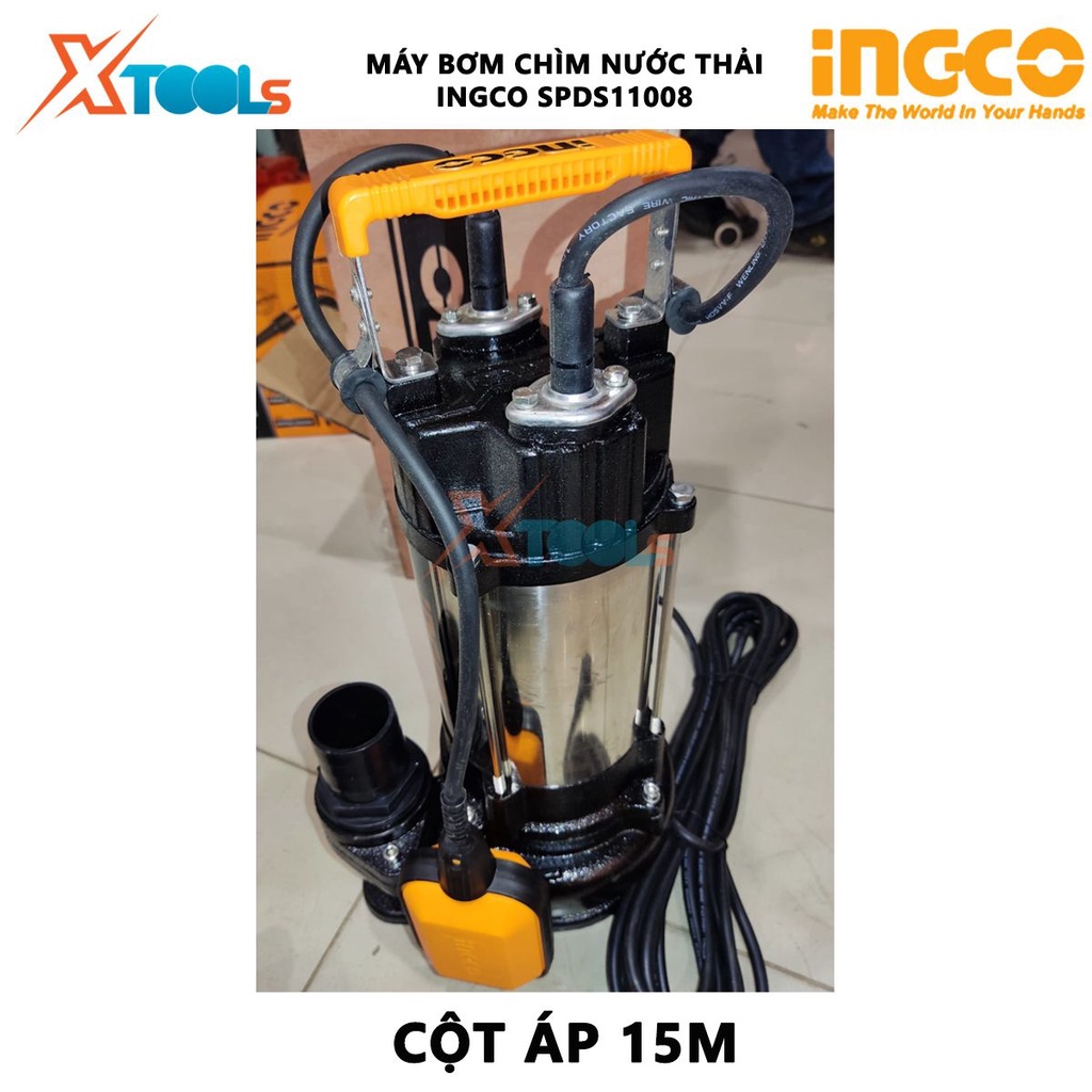 Máy bơm chìm nước thải INGCO SPDS11008 Máy bơm nước thải Điện áp 220-240V ~ 50Hz Công suất đầu vào 1100W (1.5HP) Cột áp