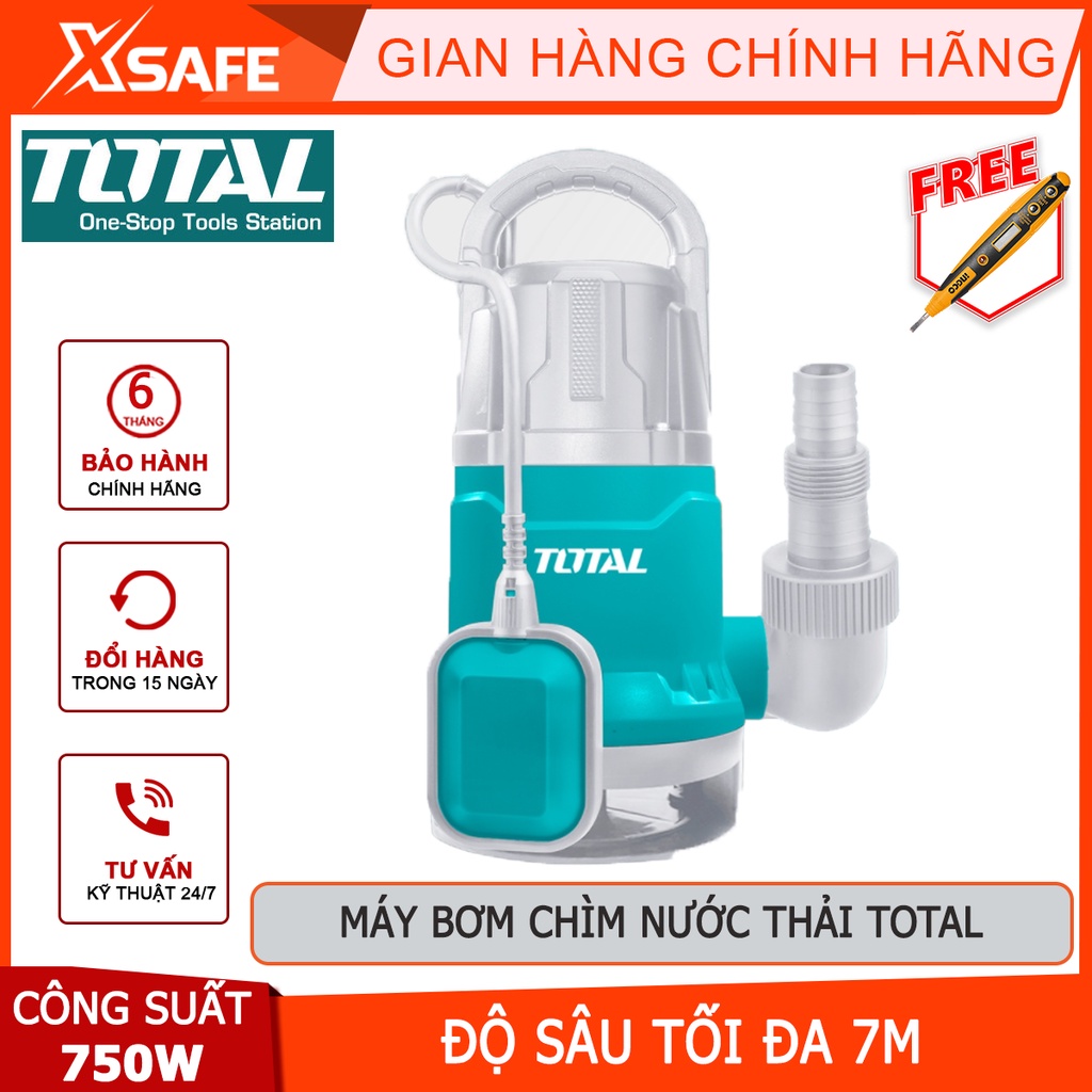 Nhà cửa & Đời sống > Dụng cụ & Thiết bị tiện ích > Máy bơm nước & phụ kiện || Máy bơm chìm nước thải TOTAL TWP87506 Bơm chìm mini công suất 750W(1.0HP), motor dây đồng, độ sâu tối đa 7m - [XSAFE]Còn hàng