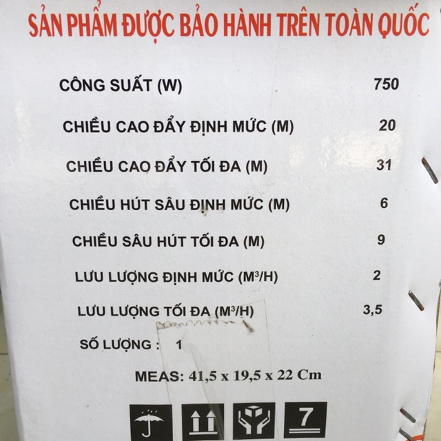 Suction&dis.pipe (ống hút & xả) : 25mm (1")