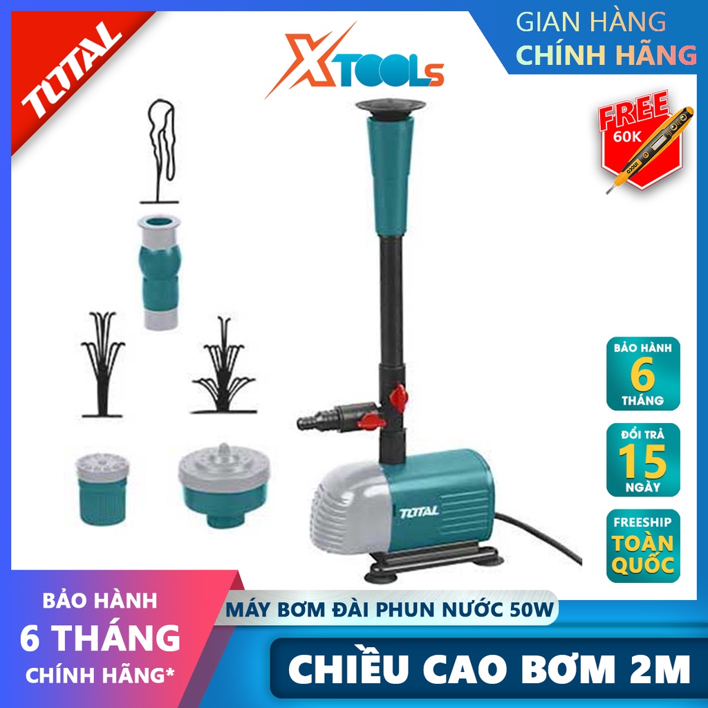 Nhà cửa & Đời sống > Dụng cụ & Thiết bị tiện ích > Máy bơm nước & phụ kiện || MÁY BƠM ĐÀI PHUN NƯỚC TOTAL TWPM501 Máy bơm nước hồ cá Công suất 50W Chiều cao bơm 2M Lưu lượng1500L / H Độ hút sâu 3mCòn hàng