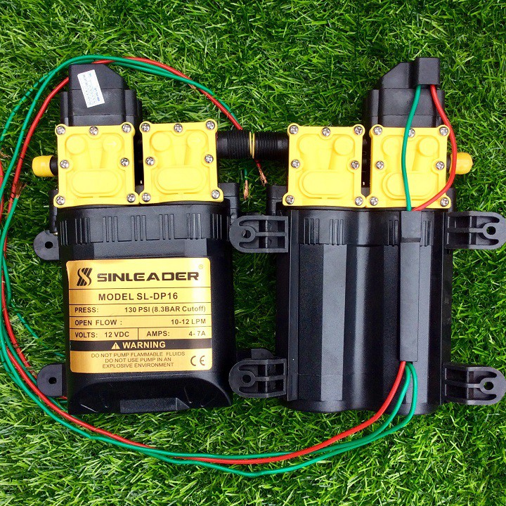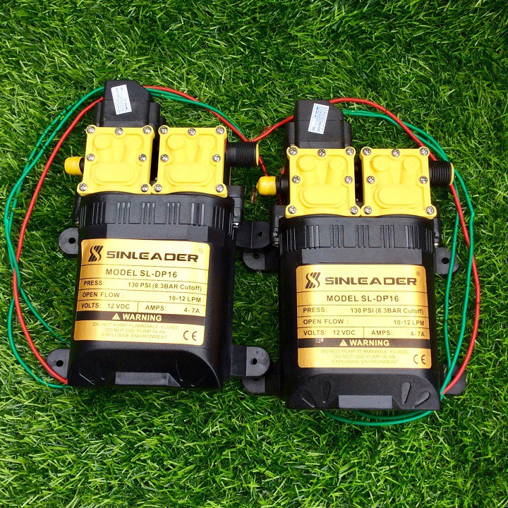 Máy bơm đôi Sinleader 12VMáy bơm SINLEADER chất lượng cao, . Sử dụng bơm tăng áp, tưới cây, rửa xe, xịt rửa điều hòa, nhà cửa chuồng trại, phun sương, phun thuốc trừ sâu ...