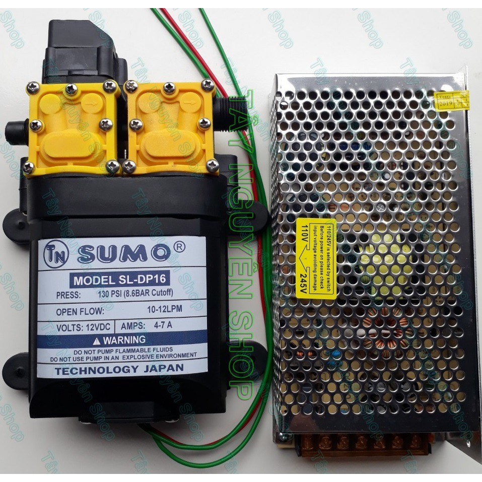 Bộ Máy bơm đôi SUMO mẫu mới 2020 và nguồn TỔ ÔNG 12v 10A - Bơm Phun Sương - Bơm Tăng áp