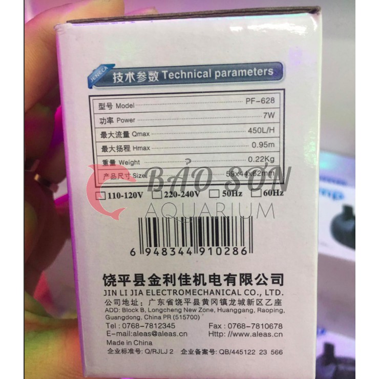 Máy bơm jeneca PF-628 7w 450l/h đẩy cao tối đa 0.95m. Máy bơm nước chính hãng của jeneca tiết kiệm điệnGiá YOOSHI