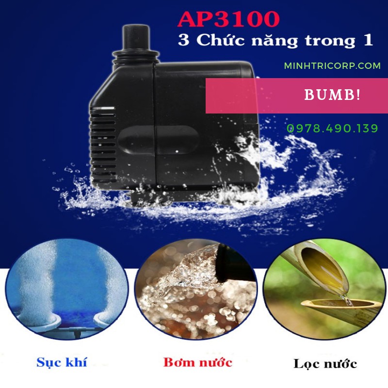 Bơm Lifetech AP 3100 loại máy bơm nhỏ có thể đẩy nước lên đến độ cao 2.8M, lưu lượng 1350L/hCông suất: 28W