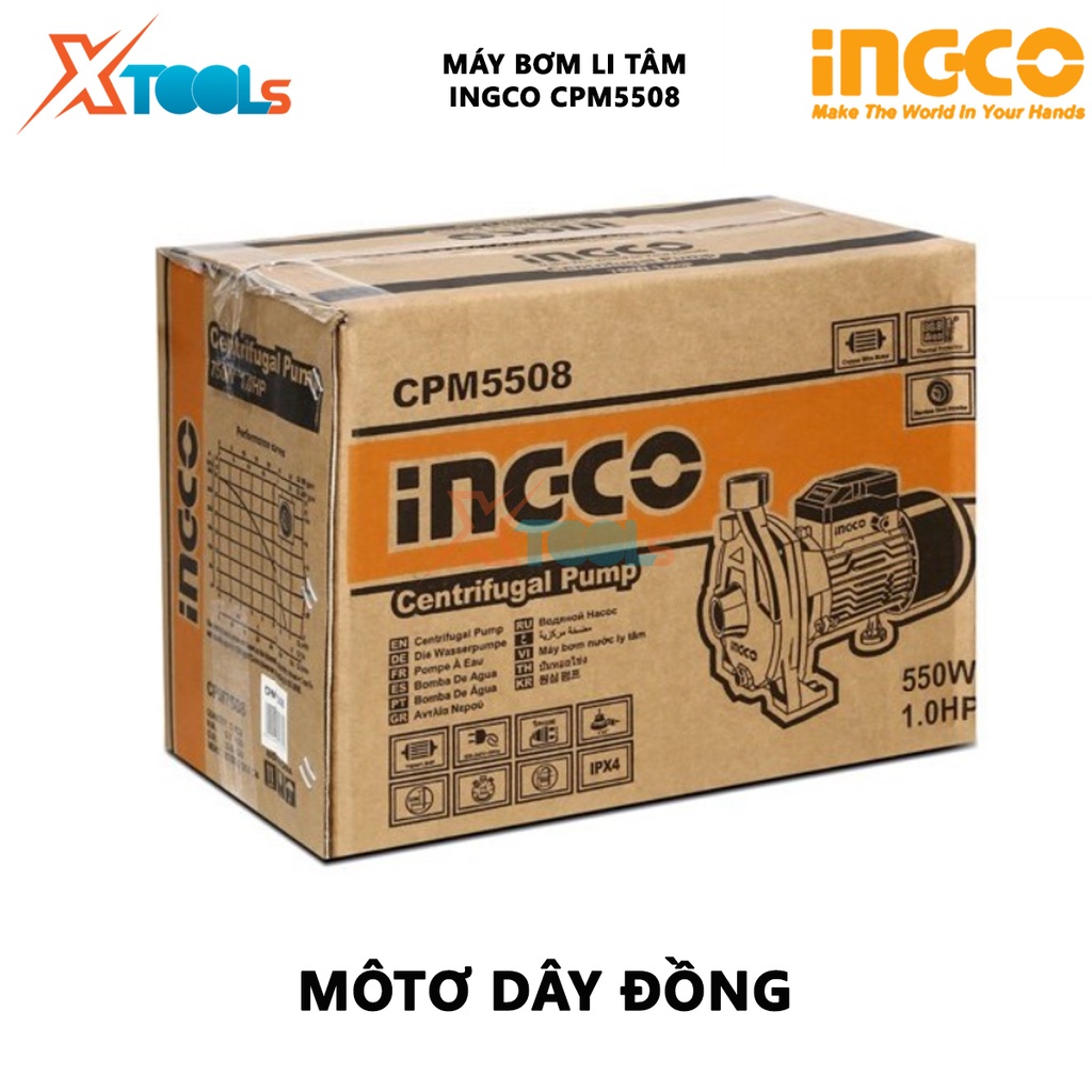 - INGCO CPM5508 là loại máy bơm ly tâm với công suất lên đến 550W(0.75HP) hoạt động ổn định trên nền điện thế 220-240V thông dụng tại thị trường Việt Nam.