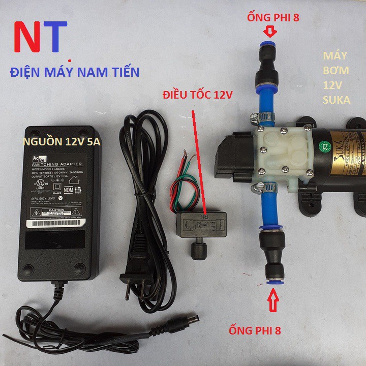BỘ Máy bơm mini 12v + 2 đầu chuyển ống 8mm gồm