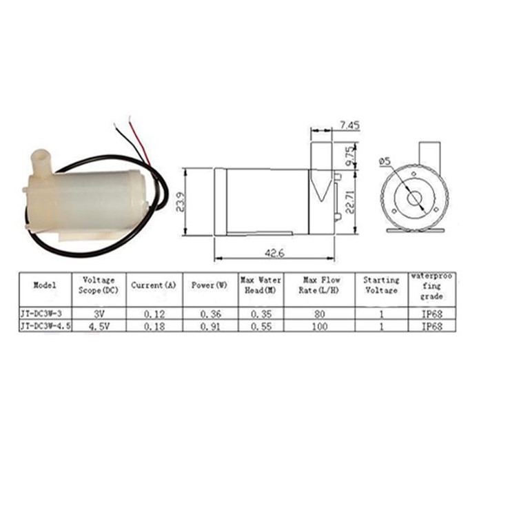 Máy bơm nước chìm mini 3W 3V-6V. Màu sắc ramdom trắng và đen
