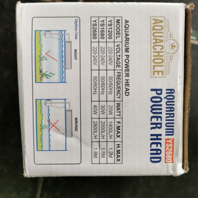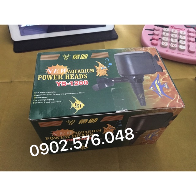 Máy bơm YS1200 2 chức năng, 1 đầu bơm nước lên lọc, 1 đầu phun nước tạo oxi trong bể cá--- 20w